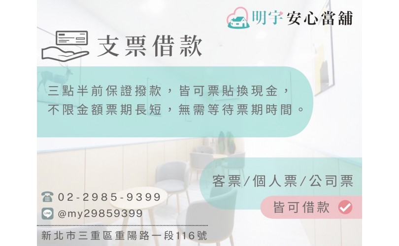 ■ 支票借款/票貼:公司票、個人票、客票皆可辦理